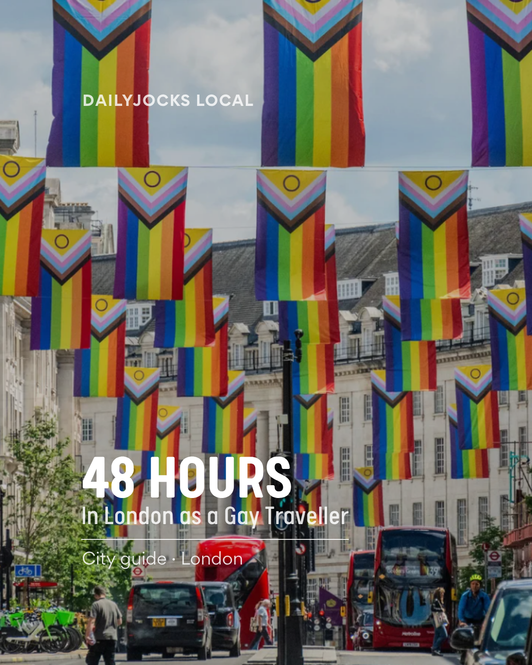 That's London in 48 hours. The full guide — neighbourhoods, cruising, bars, clubs, hotels, and where to eat — is live at DailyJocks Local.