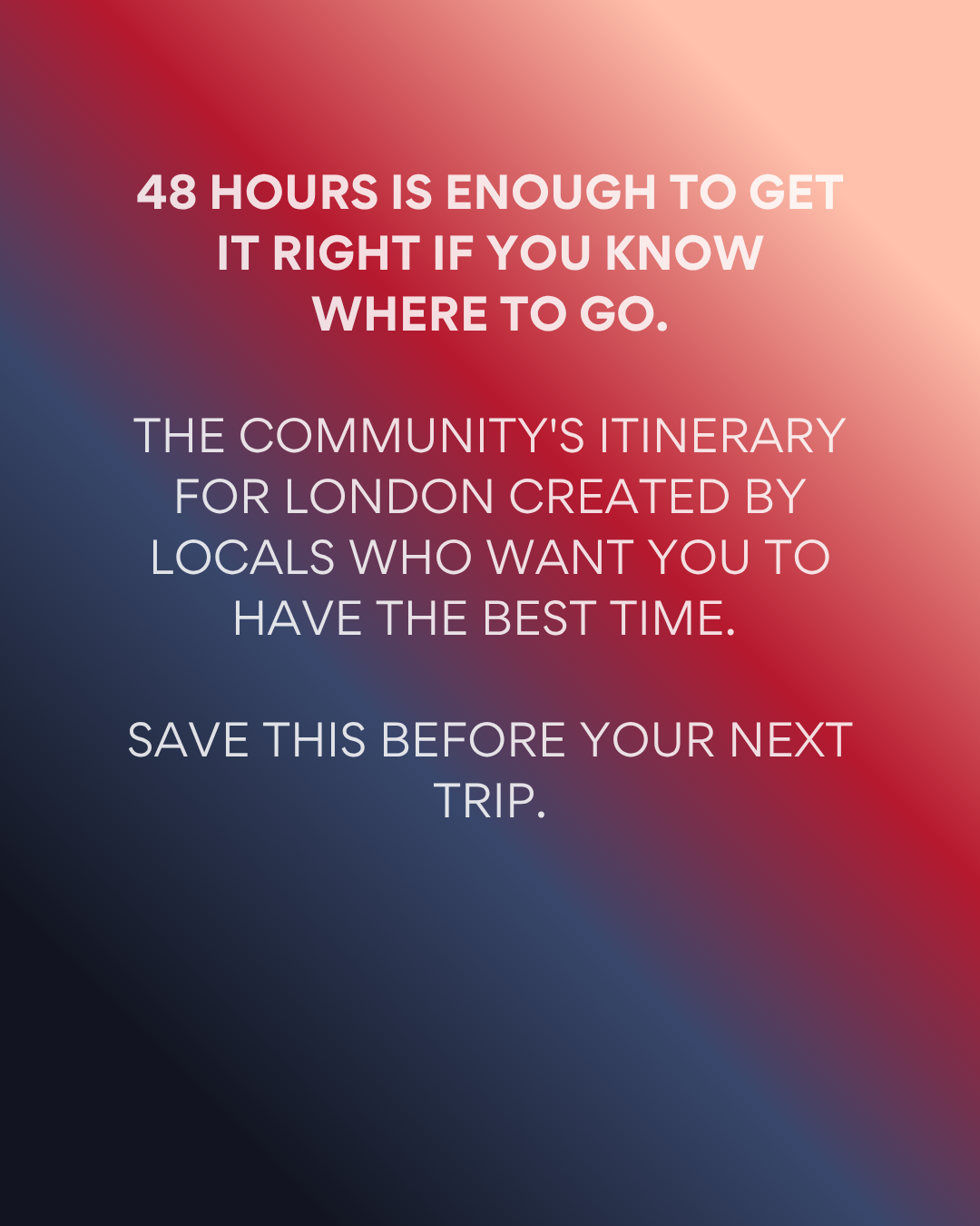 48 hours in London done well leaves you with a clear picture of what the city actually is and a list of reasons to come back. The right base in Vauxhall, the Thames on day one, Soho and a big night to close it out, Hampstead Heath on day two, a new neighbourhood in the afternoon, and dinner worth remembering before you go again.