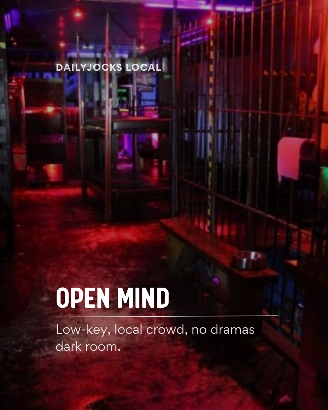 Open Mind is the other cruise bar worth mentioning in this category. Low-key, a local crowd, no drama, dark room. It operates as the less intense alternative to Men Factory and Berlin Dark — useful to know about if you want something more relaxed than the other cruise bar options.