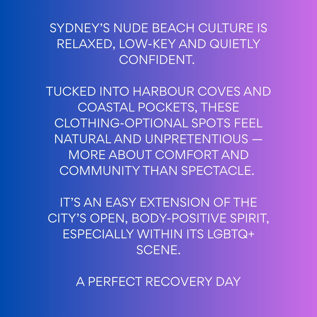 Sydney's nude beach culture operates on the same principles as the city more broadly — relaxed, body-positive, and without judgment in either direction. There is no pressure to be nude and no expectation beyond basic respect for other people on the beach.